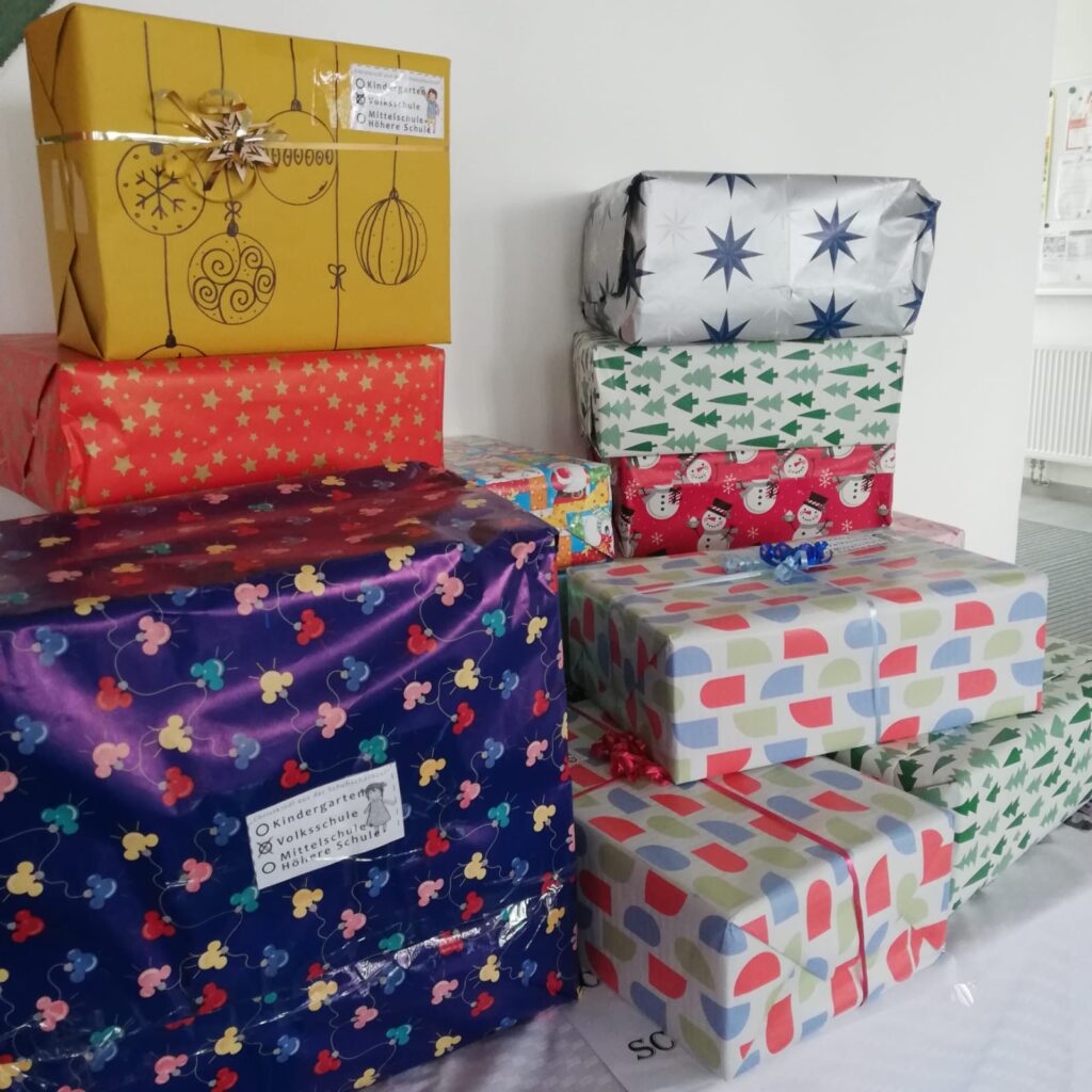Auch heuer nehmen wir wieder an der Aktion „Christkindl aus der Schuhschachtel“ teil. Die Schülerinnen und Schüler hatten die Möglichkeit, Schuhschachteln für Kinder zu befüllen, die nicht so viel haben. Jede Schachtel wurde liebevoll gefüllt und ansprechend verpackt. Kurz vor Weihnachten werden die Pakete an die Kinder verteilt.
